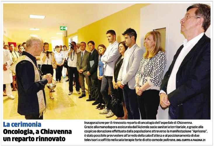 Grazie agli incassi della serata "Apericena" dello scorso 27 maggio sono stati rinnovati gli spazie dell'Oncologia dell'ospedale di Chiavenna: